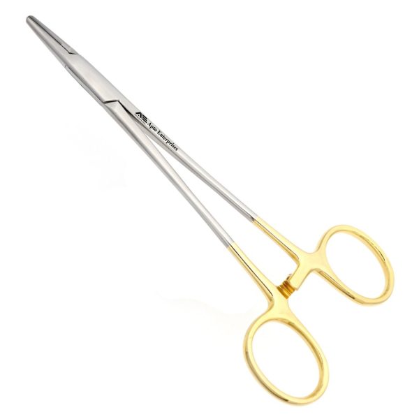 Crile-Wood Needle Holder is handcrafted from surgical-grade German stainless steel. Designed with a dependable non-slip crosshatched surface and a serrated jaw, this instrument is used to hold and drive the needle through tissue. Available in a variety of lengths. The gold handles of TC Needle Holders, indicate that the jaws are fitted with Tungsten Carbide inserts to prolong the instrument life. A lightweight and well-balanced surgical needle holder confer maximum cutting strength in all types of soft tissue with minimal force. Suitable for suture size 2-0 – 4-0.