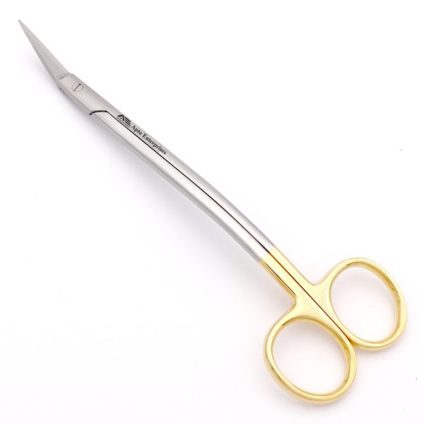 Tungsten-Carbide is incorporated into the blades which enables a precise and gentle incision, as well as a long lifespan. For easier identification, both handle rings are gold plated. Tungsten Carbide scissors used for trimming tissue or cutting sutures.