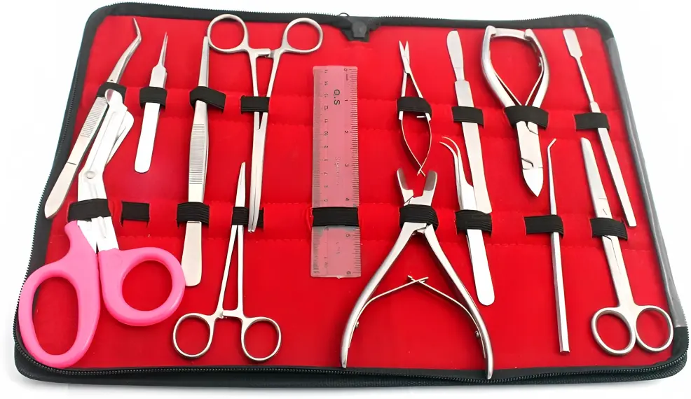 The Student Suturing Kit from Apto Enterprises comes with different surgical tools or Instruments. However, these tools include: