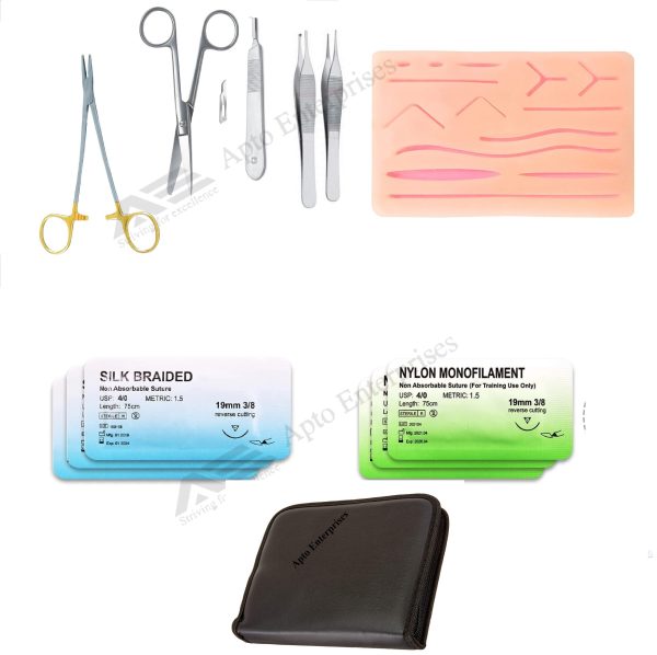 Suture Simulation kit – Gain confidence and refine your suturing skills with Apto Enterprises‘ comprehensive Suturing Simulation Kit. Developed by experienced medical professionals, this kit provides a realistic and affordable training solution for medical students, residents, nurses, and experienced surgeons looking to enhance their technique. Unlike expensive competitor kits, Apto offers the same high-quality materials and comprehensive features at a significantly lower price. Buy student surgical kit online.